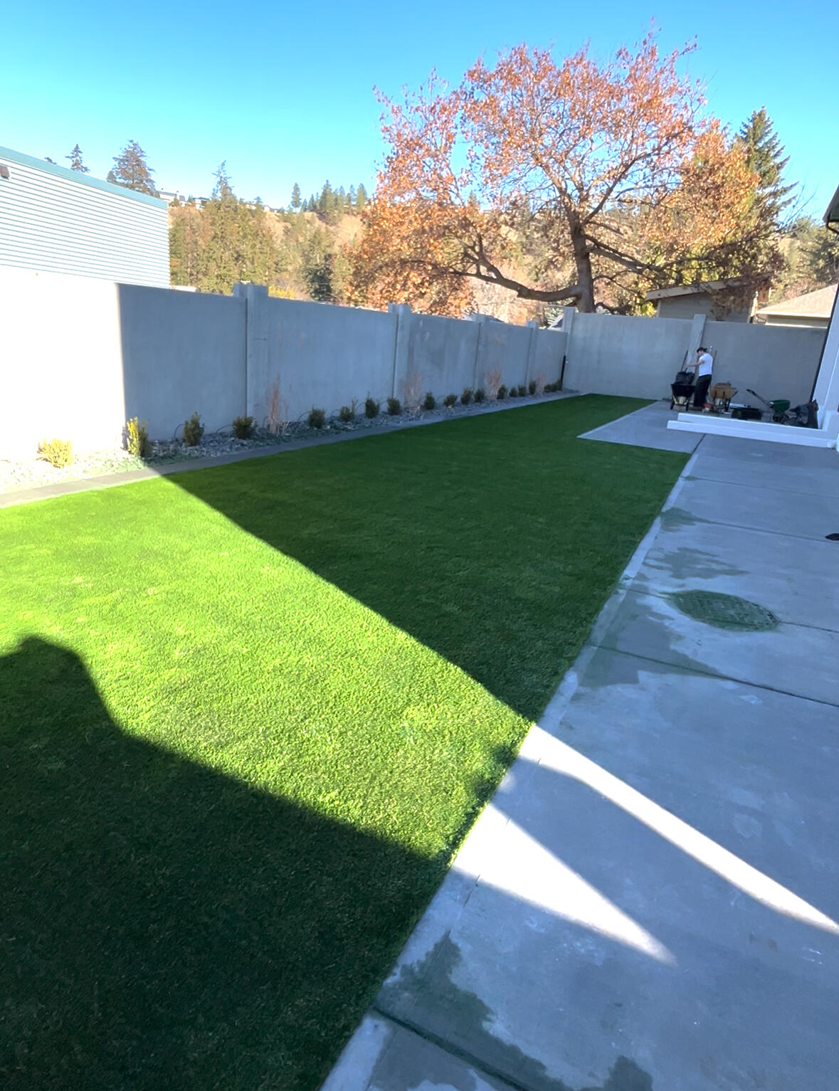 This is a perfect example of one of our "xero-scape" project. The clients didn't want to have any maintenance to deal with but still have a place their dog can run around and play. We left the house with a resilient, long term solution that not only looks great but requires virtually no maintenance.